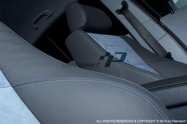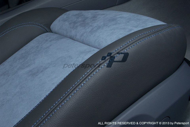 Grey Leather - seats Blue ALCANTARA - seats and doors Blue stitching Petersport Tri-Colore Stitching - steering wheel BLUE/SILVER/WHITE
