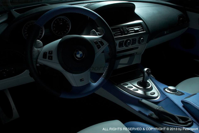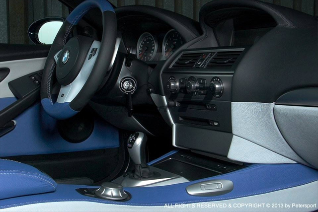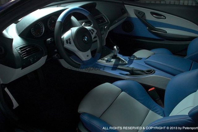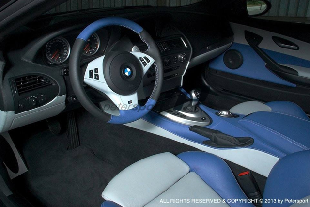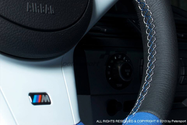 Blue and White Leather with LV logo - Seats and Doors Blue and Black Leather with Petersport Tri-Colore Stitching - Steering Wheel